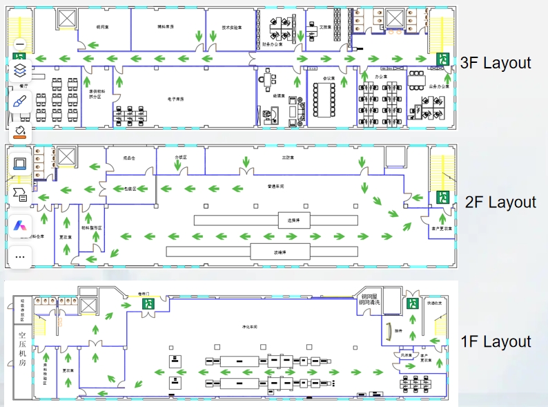 The company has a three-story standalone workshop with a total area of 3,000 square meters.